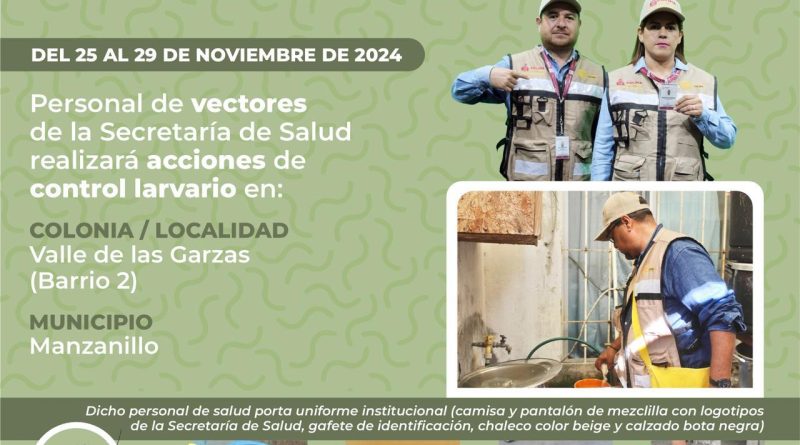 Durante toda la semana, la Secretaría de Salud Colima, en coordinación con el Gobierno de Manzanillo, continuará con la campaña de acciones de control larvario domiciliario en la colonia Valle de las Garzas del Barrio 2.