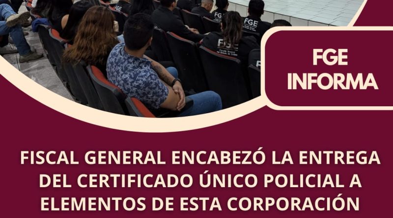 Fiscal General encabezó la entrega del Certificado Único Policial a elementos de esta corporación