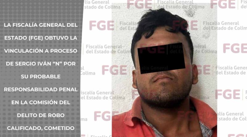La Fiscalía General del Estado (FGE) obtuvo la vinculación a proceso de Sergio Iván “N” por su probable responsabilidad penal en la comisión del delito de robo calificado, cometido en agravio de una tienda Oxxo ubicada en el municipio de Tecomán.