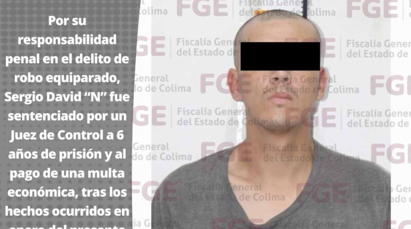 Por su responsabilidad penal en el delito de robo equiparado, Sergio David «N» fue sentenciado por un Juez de Control a 6 años de prisión y al pago de una multa económica, tras los hechos ocurridos en enero del presente año.